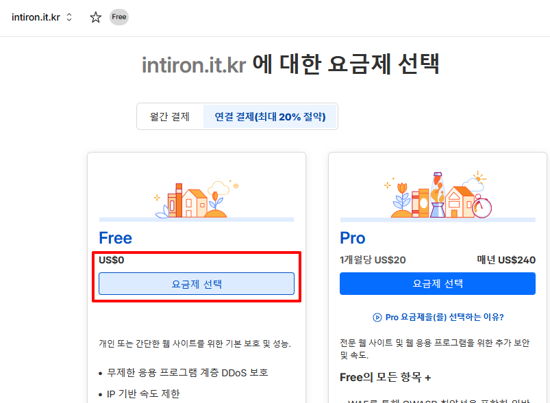 그 후 요금제를 선택하는 화면이 나오는데 난 free요금제로 문제 없으므로 Free 선택
