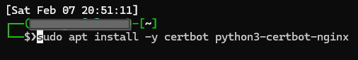 $ sudo apt install -y certbot python3-certbot-nginx그 후 설치 후 Let’s Encrypt 인증서를 생성하면서 nginx에 바로 적용을 시도했다.