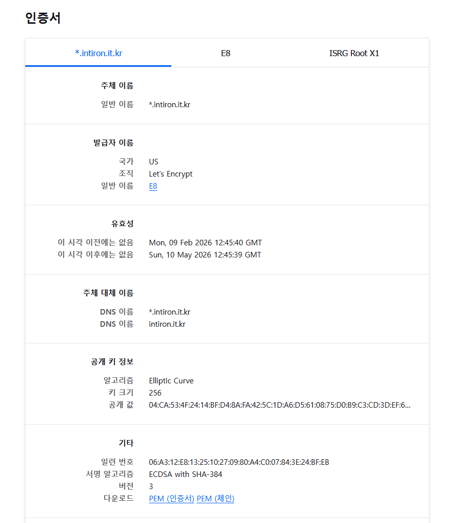 성공했으니 발급된 인증서 확인해보자