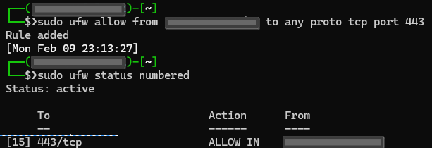 $ sudo ufw allow from IP/대역 to any proto tcp port 443