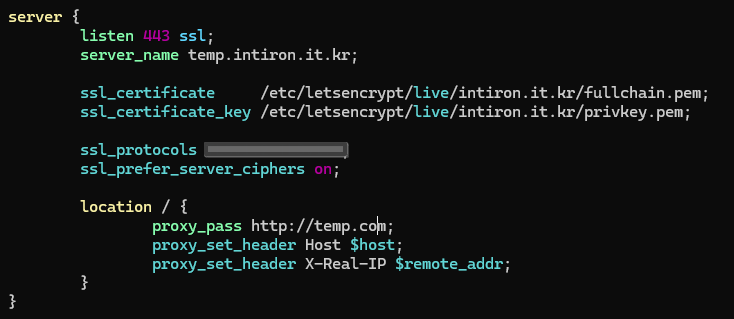 인증서를 발급 받았으니 이제 해당 인증서를 nginx에 적용해보자