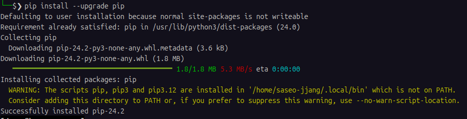 pip 설정에 break-system-packages 설정을 true로 변경해주면 된다고 해서 변경하고 혹시몰라 pip 업그레이드까지 진행하여봤다.