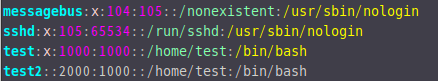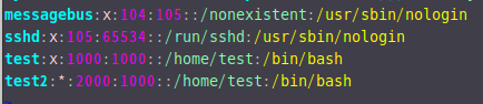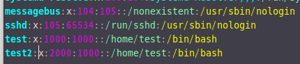 여기서 sudo vim /etc/passwd로 test2를 추가해보자