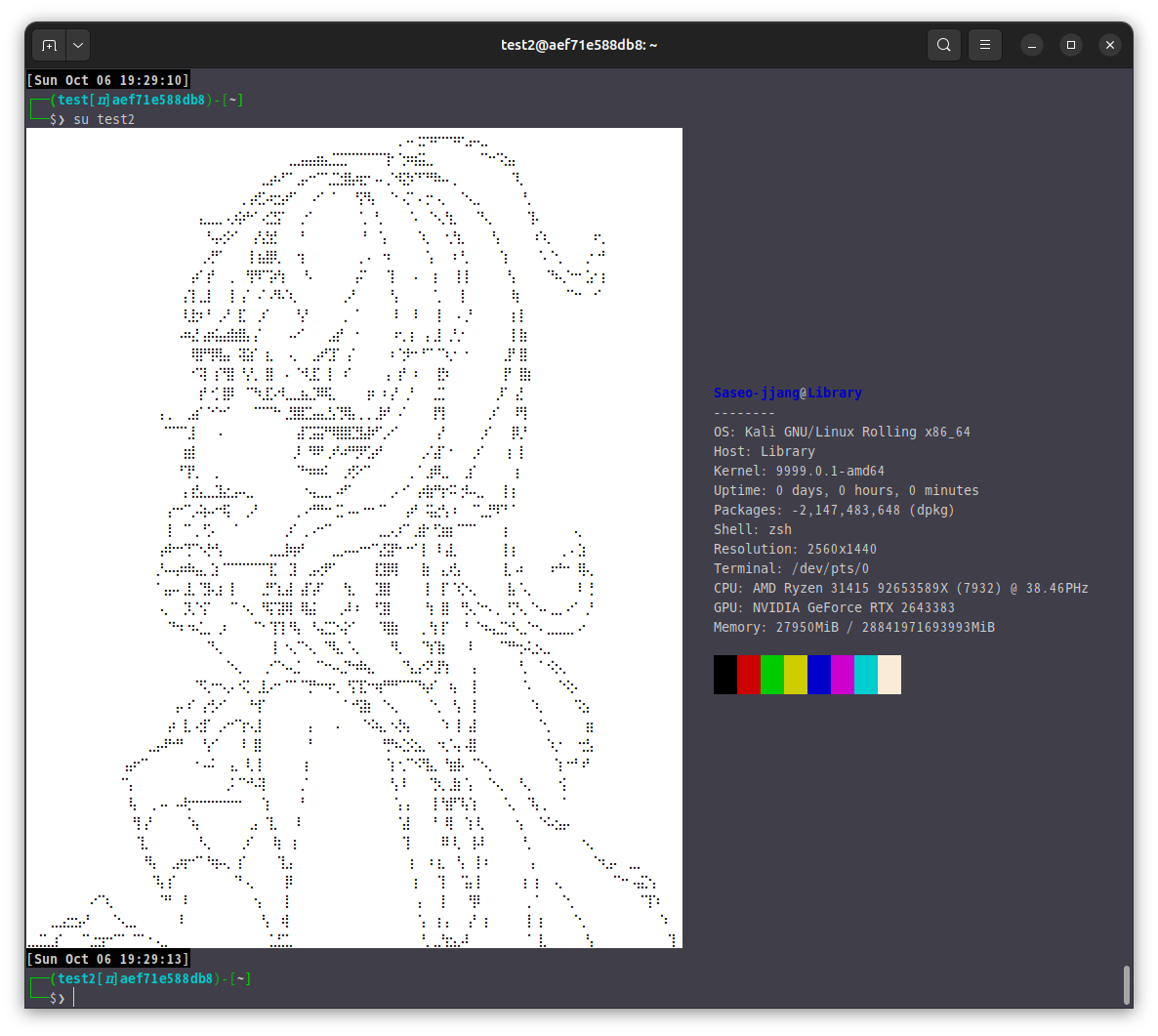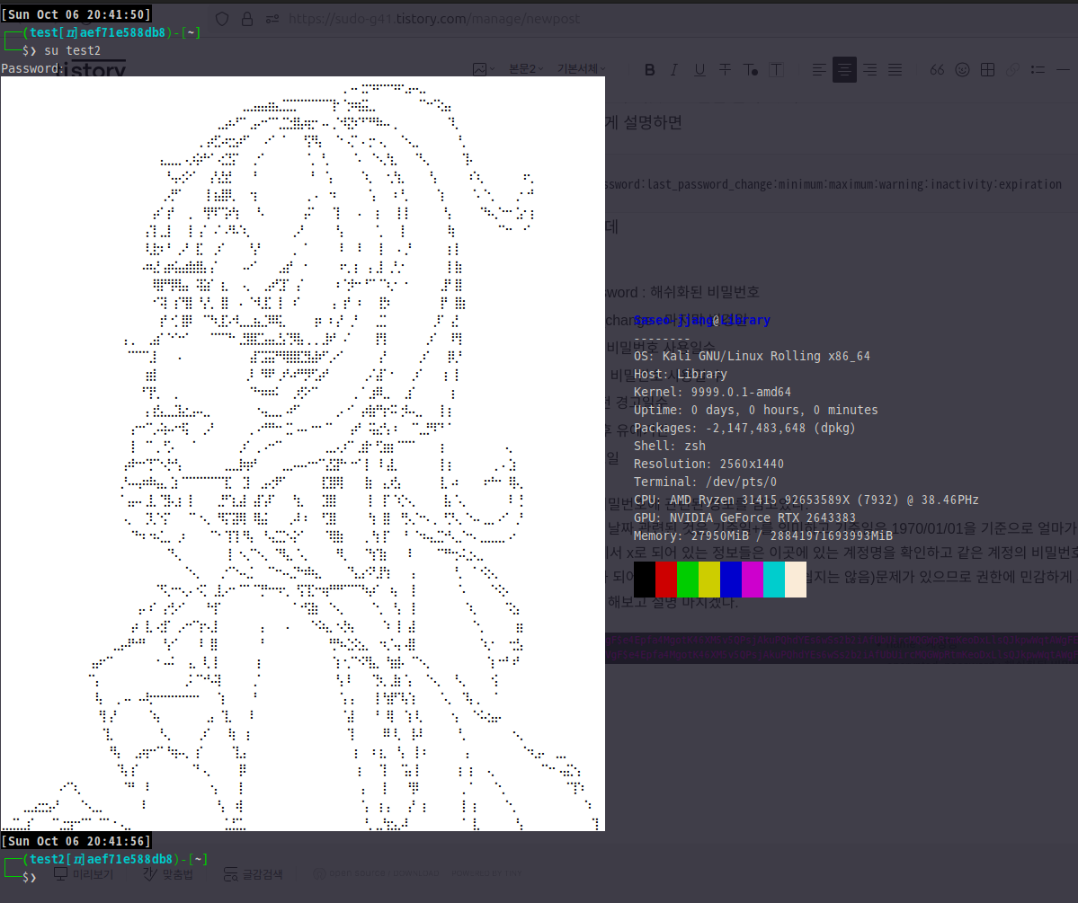공백은 비밀번호가 없다는 뜻으로 비밀번호가 su, ssh등으로 해당 유저의 계정으로 접속은 시도해 비밀번호 확인 절차 없이 바로 접속이 되는 것을 볼 수 있다.