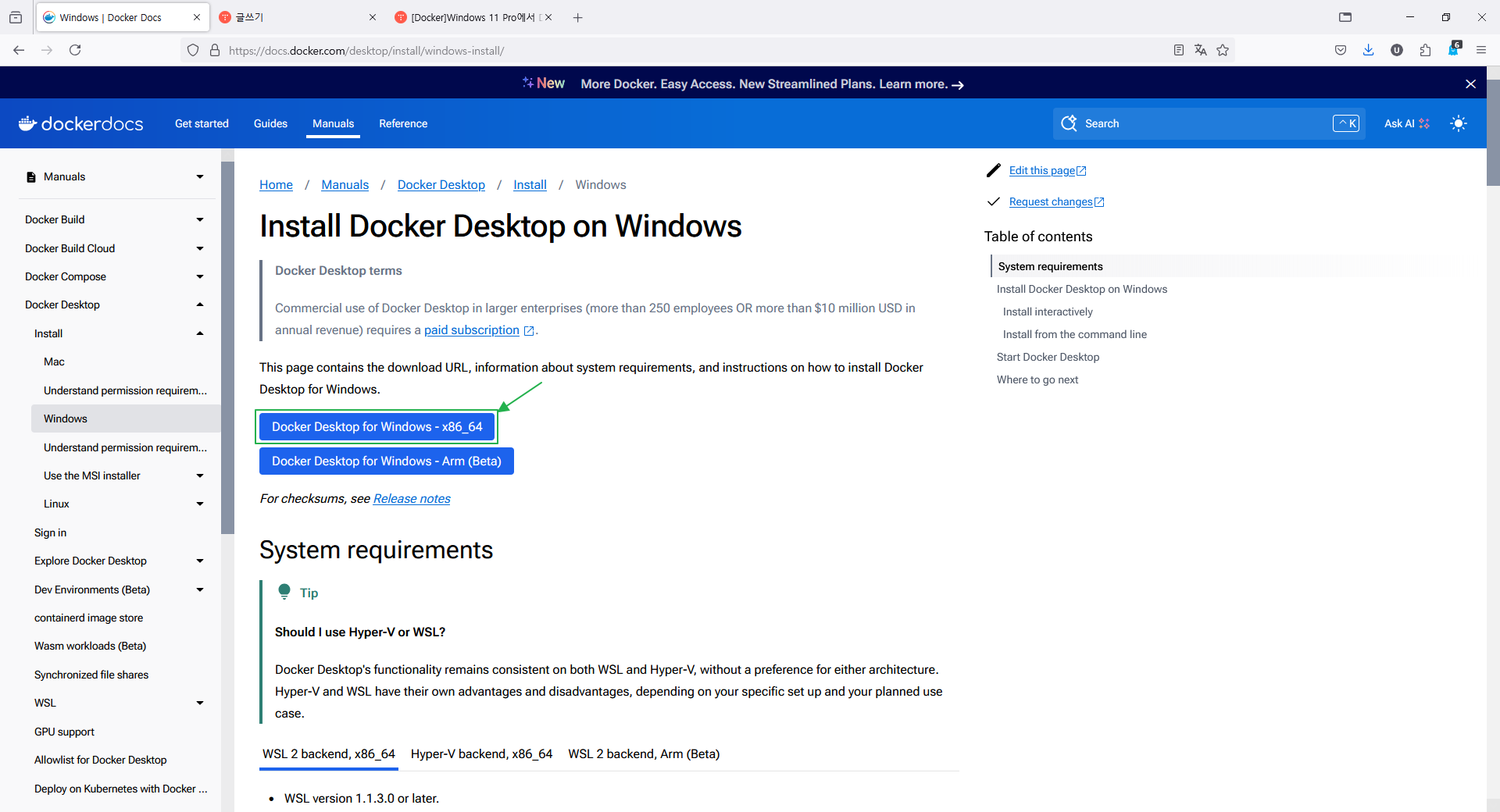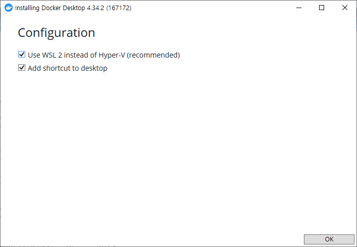 그러므로 WSL 설치와 Hyper-V 설정이 필수지만 Docker 설치 파일이 잘 해줄 것이다.